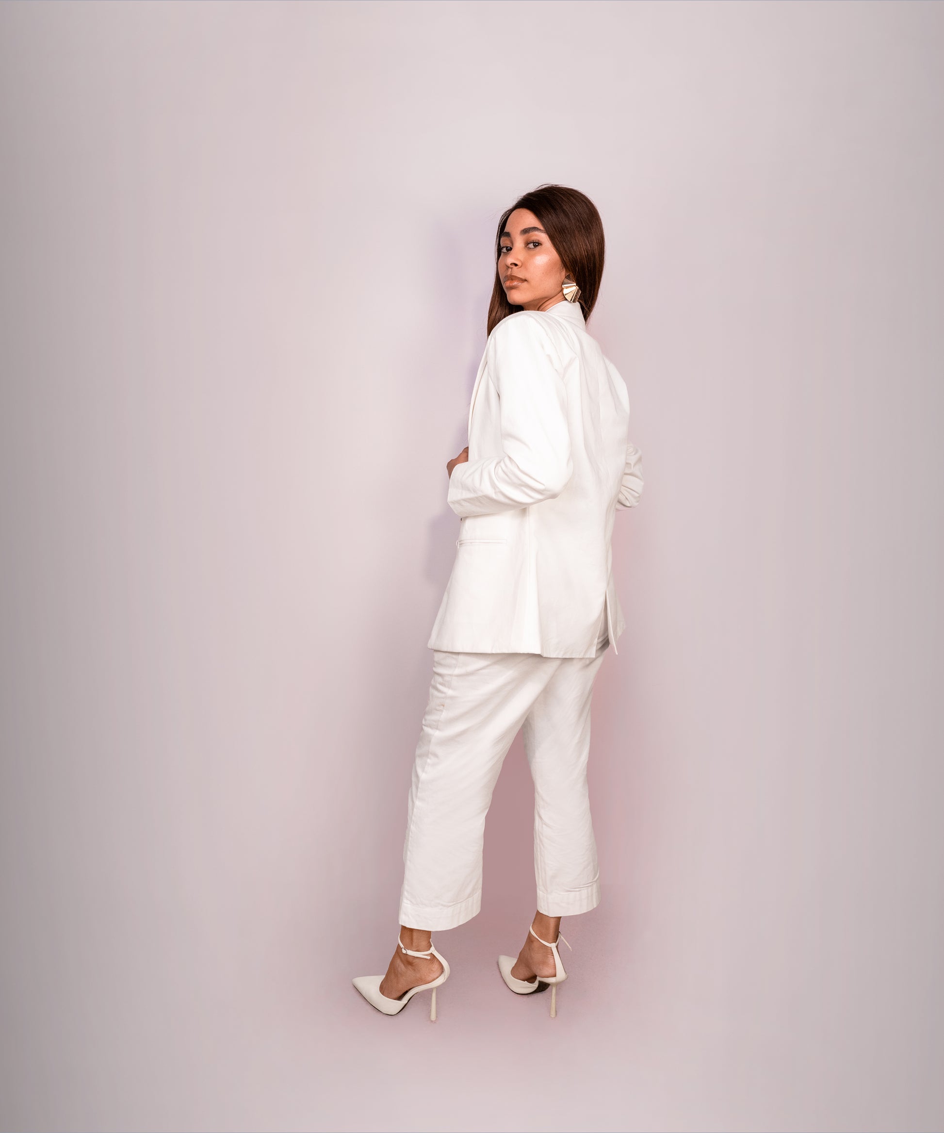 Elevate your wardrobe with our 100% Organic Cotton Twill Blazer, a perfect blend of power dressing and sustainability. The blazer is functional with side pockets for everyday use.  Designed for the confident, eco-conscious woman, this blazer exudes elegance, making it a versatile addition to any wardrobe.